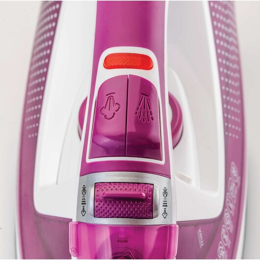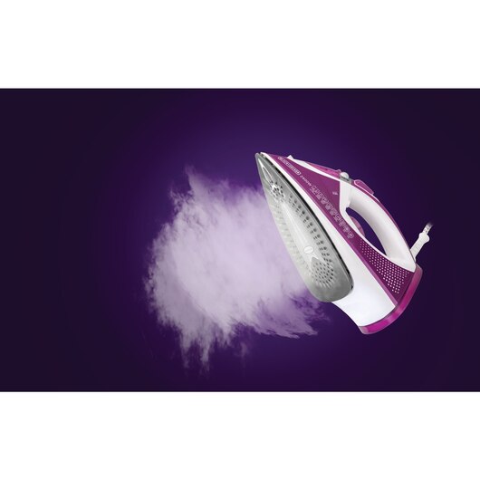 The 2400W steam iron with a ceramic soleplate delivers powerful steam performance for wrinkle-free clothes. Enjoy continuous steam, a large water tank, and convenient features like self-clean and anti-drip.