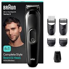 Braun Multi Groom Trimmer with 50 mins battery, versatile accessories, easy cleaning, and 1-year warranty.
