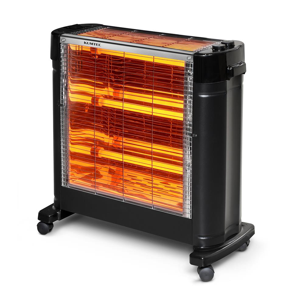 This powerful 2700 Watt heater operates on 220-240 Volts and features an adjustable thermostat, 3 infrared heating elements, and rollover safety. It also includes steam function with outdoor heating area of 23 m² and indoor heating area of 33 m². Comes with a 3-year warranty for peace of mind.