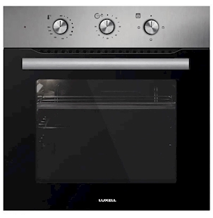 Luxell stainless steel oven with electric heating, 60 cm width, non-self-cleaning, and 2000W power consumption.