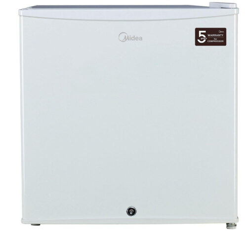 The Midea Single Door Refrigerator in elegant white offers adjustable shelves, LED lighting, and manual thermostat for efficient cooling. With a compact size of 49.2×247.2x45cm, it is perfect for small spaces.