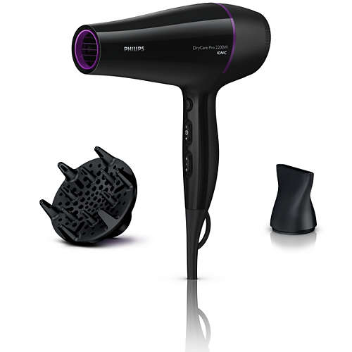 Philips DryCare Pro Hairdryer – 2200W AC Motor, Ionic Conditioning, Lightweight Design, Cold Shot Feature, Various Attachments