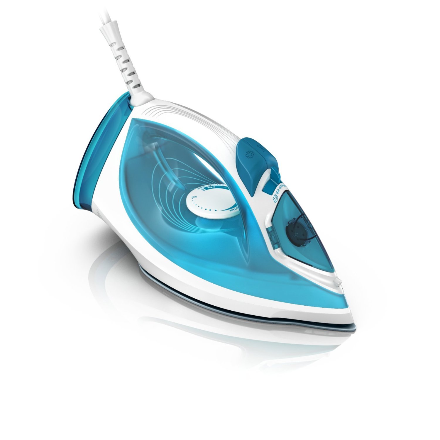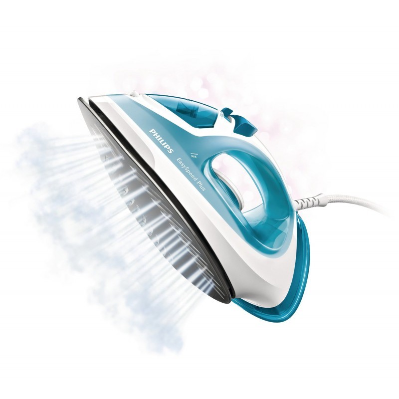 Efficient Philips Steam Iron with 2100W power, non-stick soleplate, 30g/min steam output, 100g steam boost, anti-calc, and 270ml water tank.