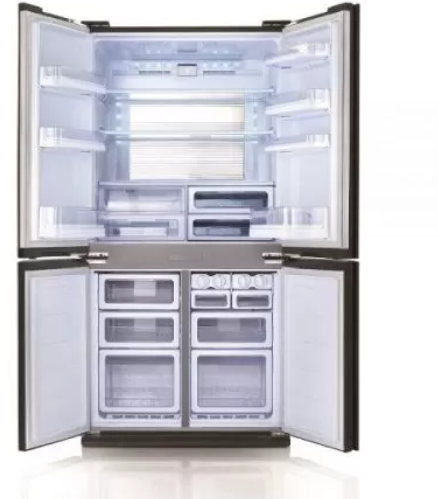 The Sharp 4-Door Refrigerator is a sleek and efficient appliance that offers ample storage space and advanced features for optimal food preservation. With a 26cft capacity and J-Tech Inverter Compressor, it ensures consistent cooling while the High Humidity Vegetable Crisper and Hybrid Cooling Panel maintain freshness. The Express Freezing and Plasmacluster Ion Technology enhance food preservation. Its 2x Twist Ice Maker provides convenience, and the Brilliant LED Lighting illuminates the interior. The Operation Display Panel offers easy control and monitoring. Dimensions: 90 x 183 x 77cm. Warranty: 1 year.