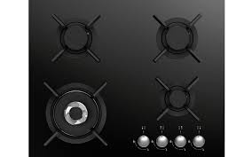 Sleek 60 cm gas hob with glass top, one-touch automatic ignition, safety features, and 4 burners. Includes 1-year warranty.